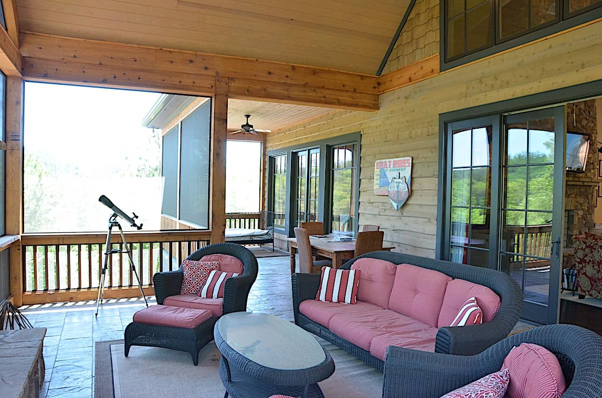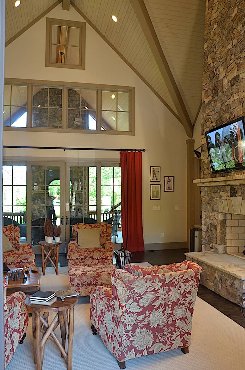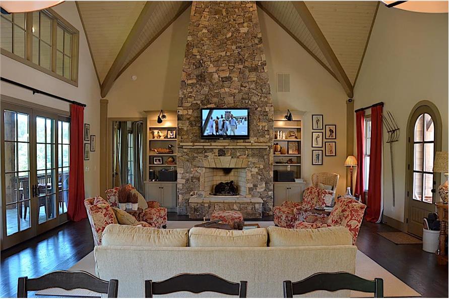 At the center front of the house lies the majestic covered porch with its main entrance door ushering you into the open-plan family room, dining area and kitchen. The fireplace in the family, or lodge, room is...