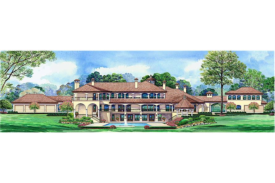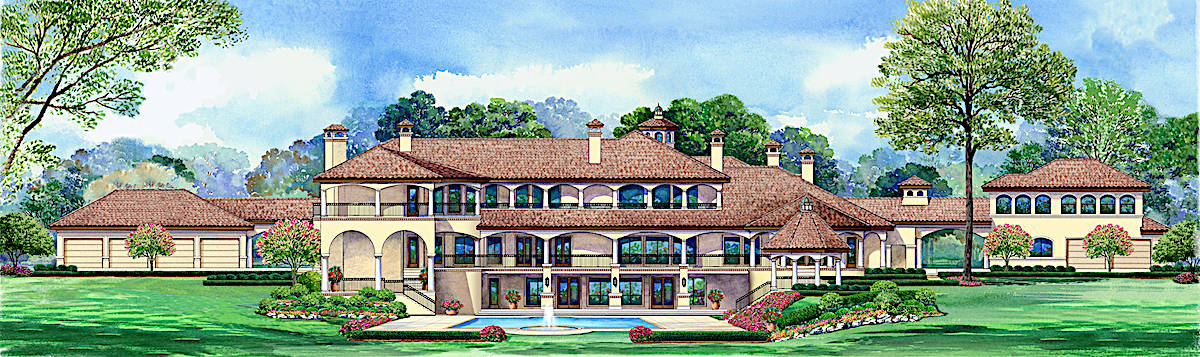 An impressive achievement of architectural design is displayed in this luxurious Spanish style home. The thoughtfully designed mansion is for someone looking for wide-open, extra-wide living areas – and magnificent outdoor living space is found on the porches. The beautiful 2-story floor plan has 12,291 square feet of heated cooled living space on the main and upper levels with a 1210-square-foot finished partial basement.