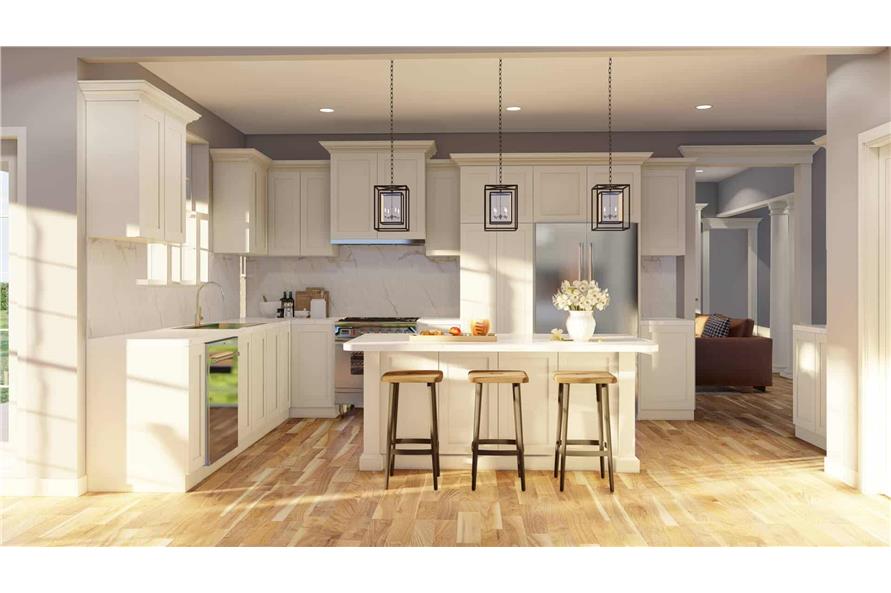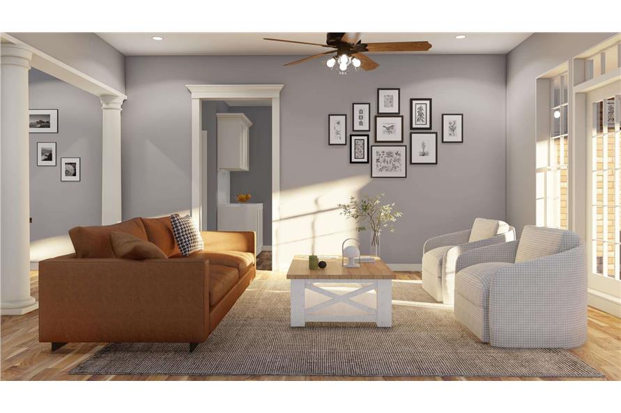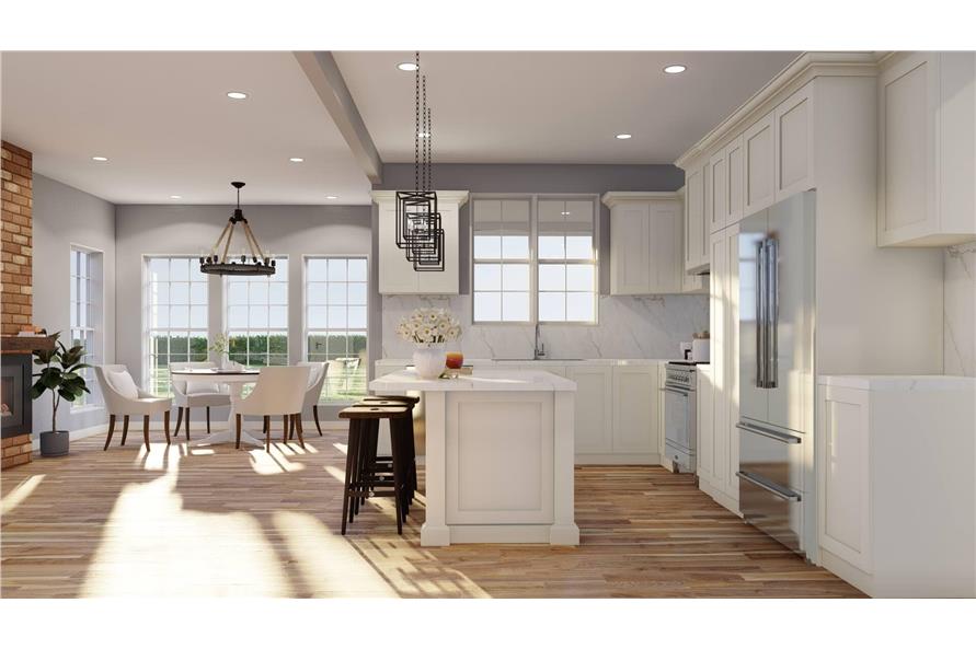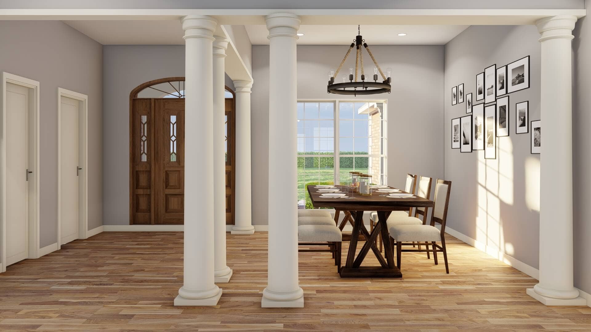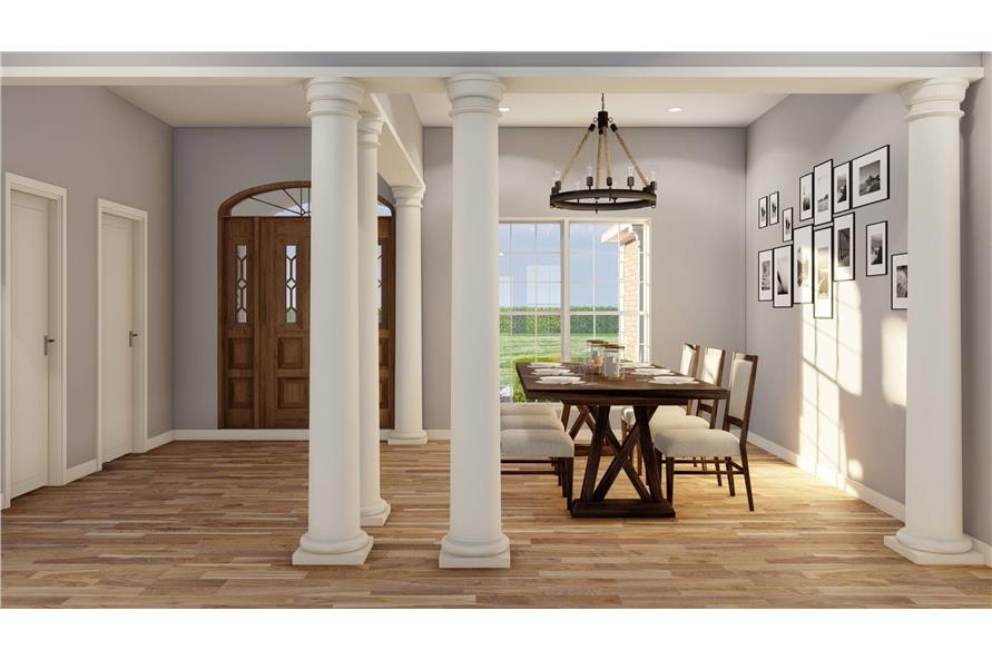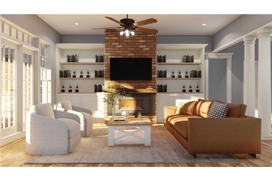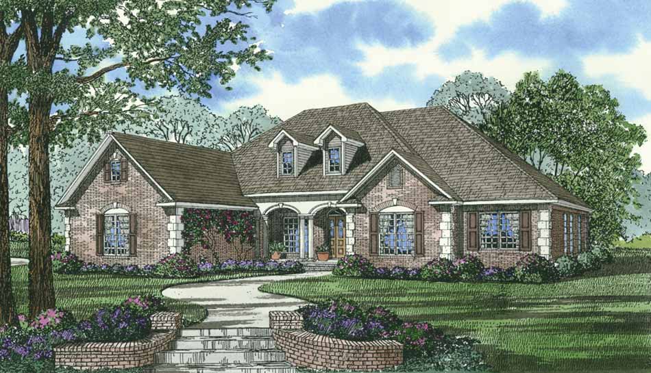 The cheerful yet traditional presence of this home captures the imagination from the first sight. As you enter into the foyer of this French Country style house plan, take note of the sturdy and elegant columns that define the dining room. Continue forward and enter the great room, complete with a media center and fireplace. It boasts beautiful French doors leading to the rear porch for entertaining guests during the warm seasons. The cozy hearth room will become the favorite gathering place in the home plan for the family, with a computer center nearby...