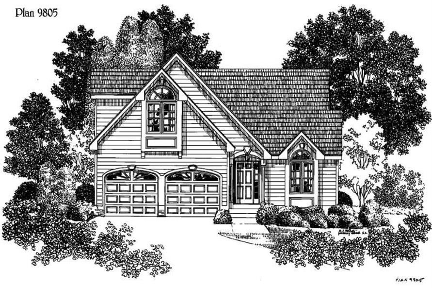 Home Plan 9805 is a great two story home plan with 3 bedrooms, 3 bathrooms, and a 2 car garage. This home plan also has a high ceiling and a walk out closet in the master bedroom.
