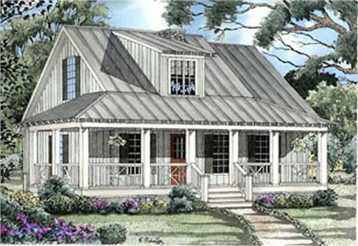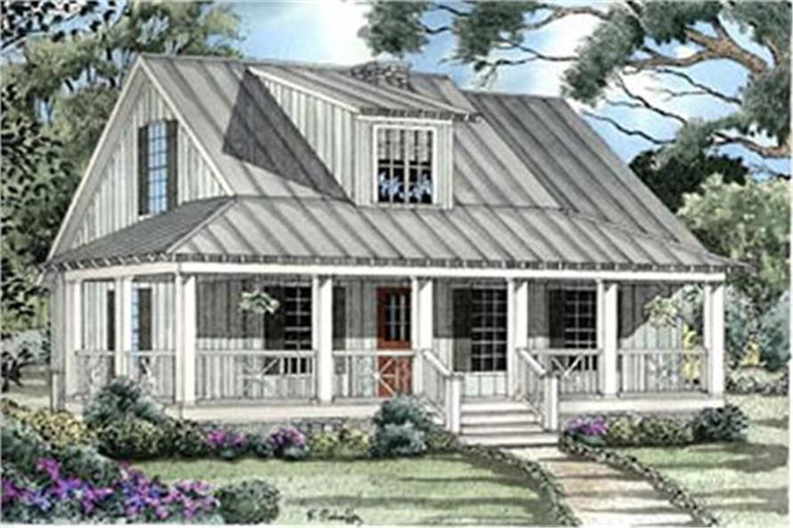 This enchanting country-style home with Small House Plans characteristics has 1397 living sq ft. The 1.5-story floor plan includes 3 bedrooms (one on the main level and 2 on the upper level) and these wonderful amenities: