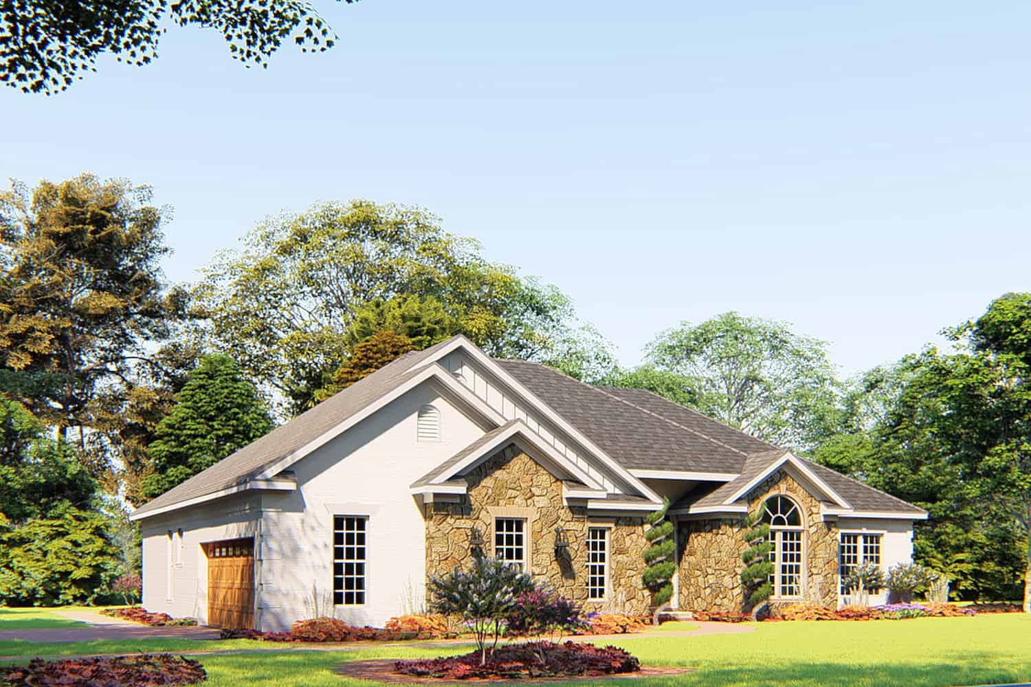 This captivating Ranch style home with Contemporary characteristics (Plan #153-1645) has 1989 square feet of finished, conditioned living space. The attractive 1-story home's floor plan includes 4 bedrooms in addition to