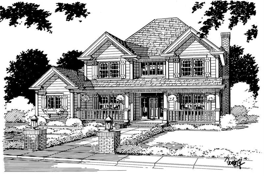 This eye-catching country farmhouse (House Plan #178-1005) has 2222 living sq ft. The 2-story open floor plan includes 3 bedrooms a sitting area, and a study.