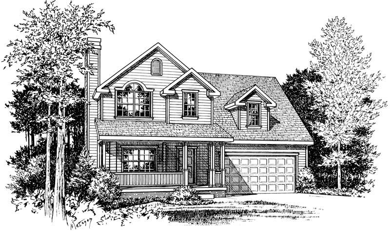 This lovely Country-style home plan with Farmhouse influences (House Plan #120-1368) has a small footprint – but over 1290 square feet of living space. The two-story floor plan includes 3 bedrooms, 2 baths, 1 half bath, and an attached garage.