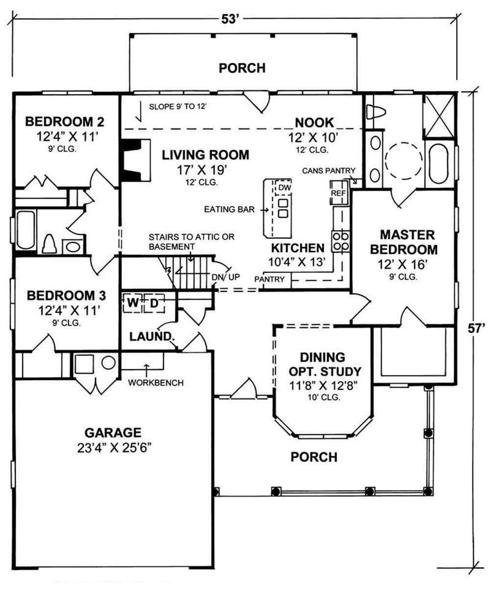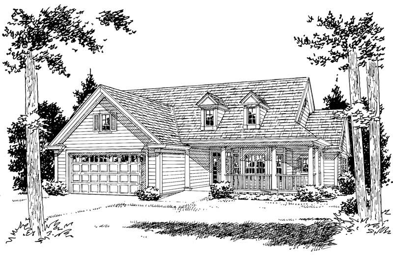 This country ranch home plan features a friendly atmosphere with an open layout. The dining room, upon entry, adds a touch of elegance, while the rest of the home is open and large. The kitchen is particularly generous in a smaller home. The living room is large, and the bedrooms remain secluded. This home features universal (wheelchair) access. The plans are noted for siding to allow customer to use the type of sidinf they want.