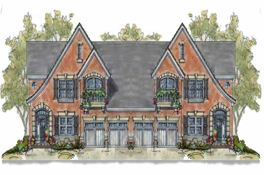 This gorgeous French style house design designed as a multi-unit (House Plan #120-1554) has over 2050 square feet of living space per unit. The two story floor plan includes 3 bedrooms.