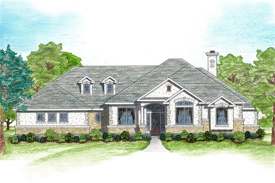 Big on ambitions, this four-bedroom house plan raises a toast to luxurious living. Combining the best of architecture and indulgence, this gorgeous Texas-style Country home plan welcomes you off the front porch into a spacious foyer with 12-foot-high ceilings. Sandwiched between the guest suite – offering use of the common bathroom and coat closet – and the study, the foyer sets those precious first impressions right.