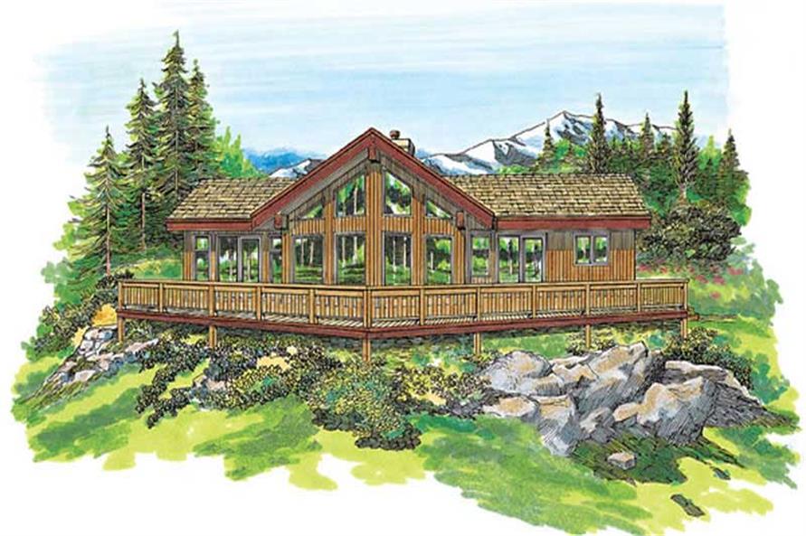 This is a grand vacation or retirement home plan, designed for views and the outdoor lifestyle. These cabin plans have a full-width deck that complements the abundant windows in rooms facing it. The living room is made for gathering.