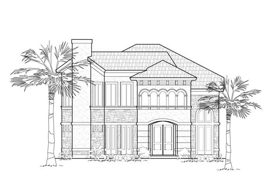 This impressive Mediterranean house design has 2,412 square feet of living space. The two-story floor plan includes 3 bedrooms and 2.5 bathrooms.