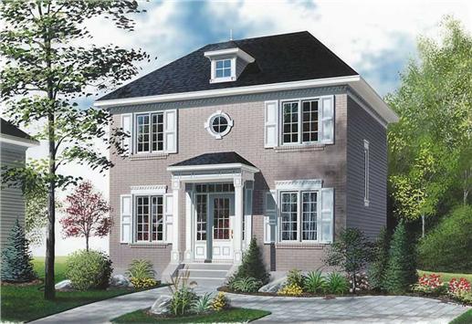 This small colonial house plan delivers a spacious feel, thanks to its open floor plan and 2 stories. On the first floor, there is an entry hall with large coat closet, family room, dining room, kitchen with lunch counter, and shower room with laundry facilities. On the second floor, there are 3 bedrooms and a full bathroom. Enjoy classic style with modern amenities with this colonial house plan.