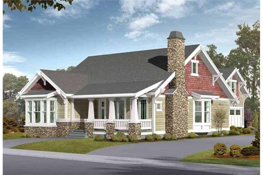 This is a classic Craftsman-style bungalow house plan. This plan makes great use of its space, packing 5 good sized bedrooms into this modest-sized home. From the curb, the graceful porch with its columns and the distinctive rooflines make this a remarkable example of Craftsman design. Step in through the front door into the foyer. The wide opening to the right eases you into the living room with the fireplace as the focal point and vaulted ceilings creating a much larger feel. Designed for a narrow lot, the living room is open to the dining room and the kitchen. The...