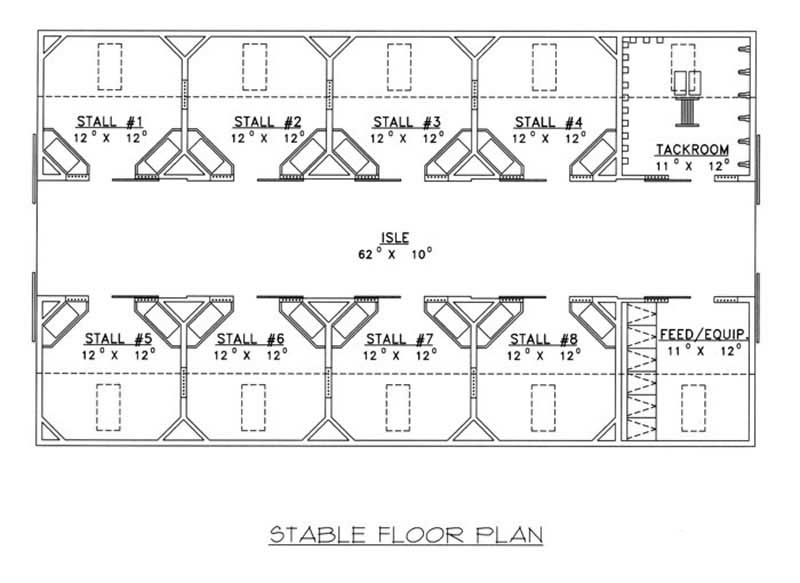 *Standard Frame Construction *Barn/Stable Style *2 Floors *8 Horse Stalls *Tackroom *Feed/Equipment Room *Hay Loft *Storage