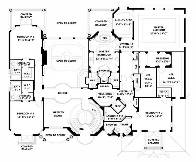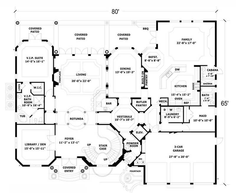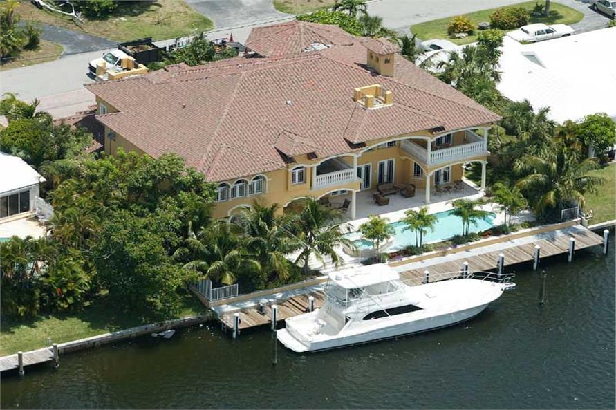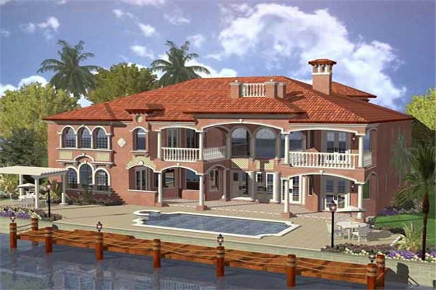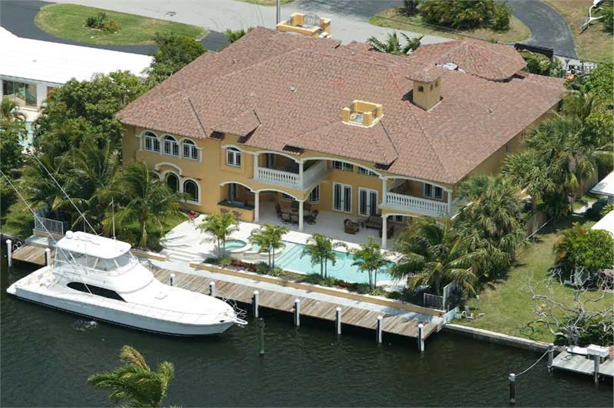 This Luxury Home Plan features include Concrete block exterior construction, Covered Entry with French doors, round columns and arch Foyer open to above with circular stairs to Upper Floor French doors to Den/Library with coffered ceiling Rotunda to Living Room with ceiling to Upper Floor, fireplace, bar and access to Rear Covered Patio Columns frame Dining Room entry with built-in Pantry Butler's Pantry Kitchen with island work area, ample counterpace and open to Breakfast and Family Rooms family room with access to Rear Covered Patio with Bar-B-Q grill Maid's Bedroom with...