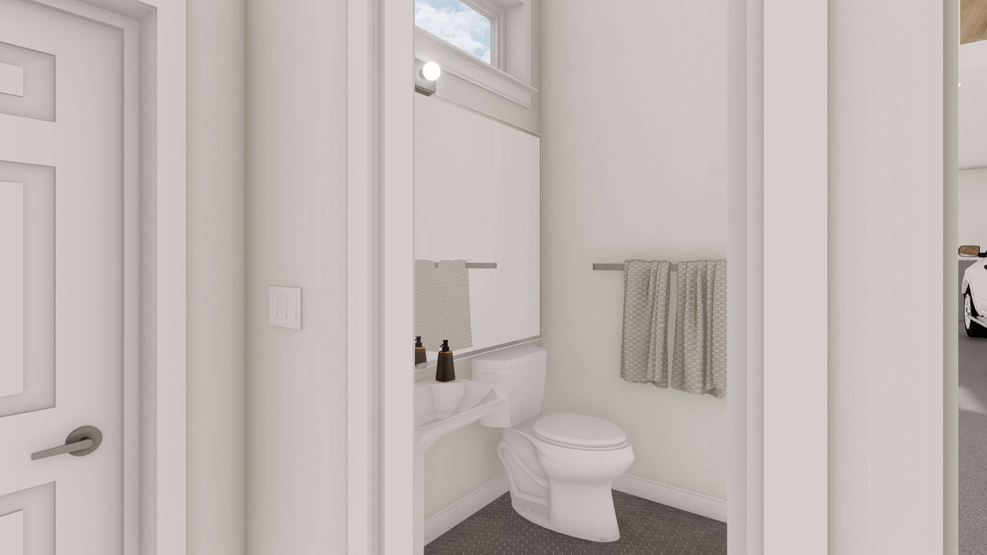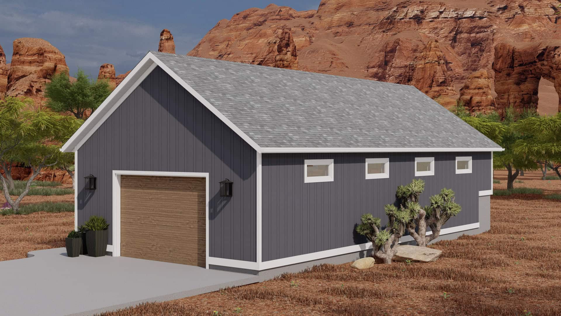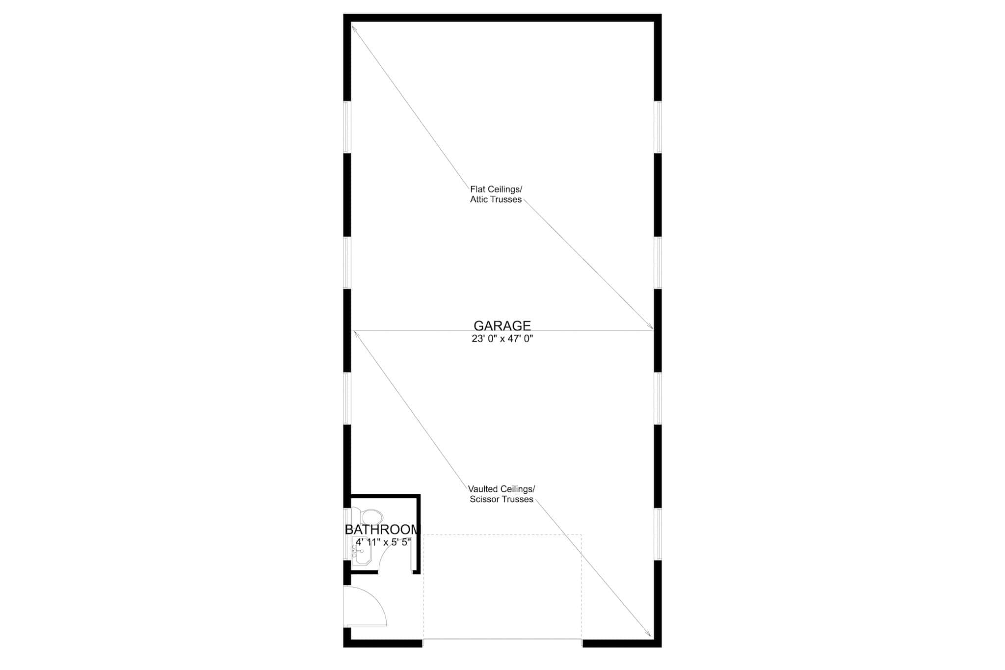 This expansive 1,152 square feet Bardominum style detached garage features four car bays and is built for ultimate versatility. With ample space for vehicle storage, a workshop, or recreational activities, it adapts to your needs. A convenient half bath adds extra functionality, making it a practical and valuable addition to any home.