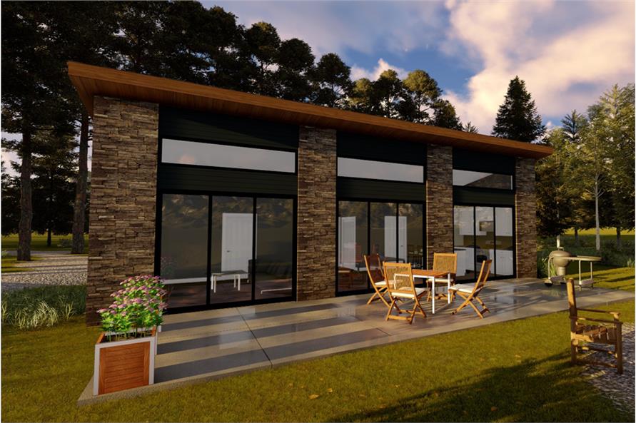 This lovely Modern style home with Contemporary influences (House Plan #100-1333) has 1014 square feet of living space. The 1 story floor plan includes 2 bedrooms.
