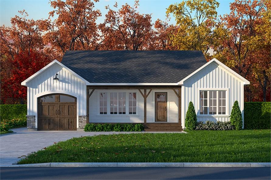 First level: Closed foyer with closet, family room, kitchen with lunch counter, dining room, 2 bedrooms, bathroom.Garage: 260 sq.ft. (23.40 sq.m.) Covered front porch, shutters.