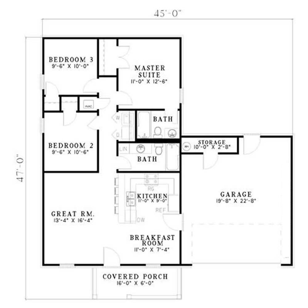 This lovely affordable home could be perfect for your family. Greet your guests on the covered front porch before heading into the spacious Great Room. Nearby, the breakfast room and step-saver kitchen merge together to simplify mealtime. This master suite would be the ideal place to sleep in late on the weekends while the kids or your guests rest comfortably in the two additional bedrooms. Ample closet space can be found throughout, as well as extra storage space in the garage is just another amenity included in this charming home design.