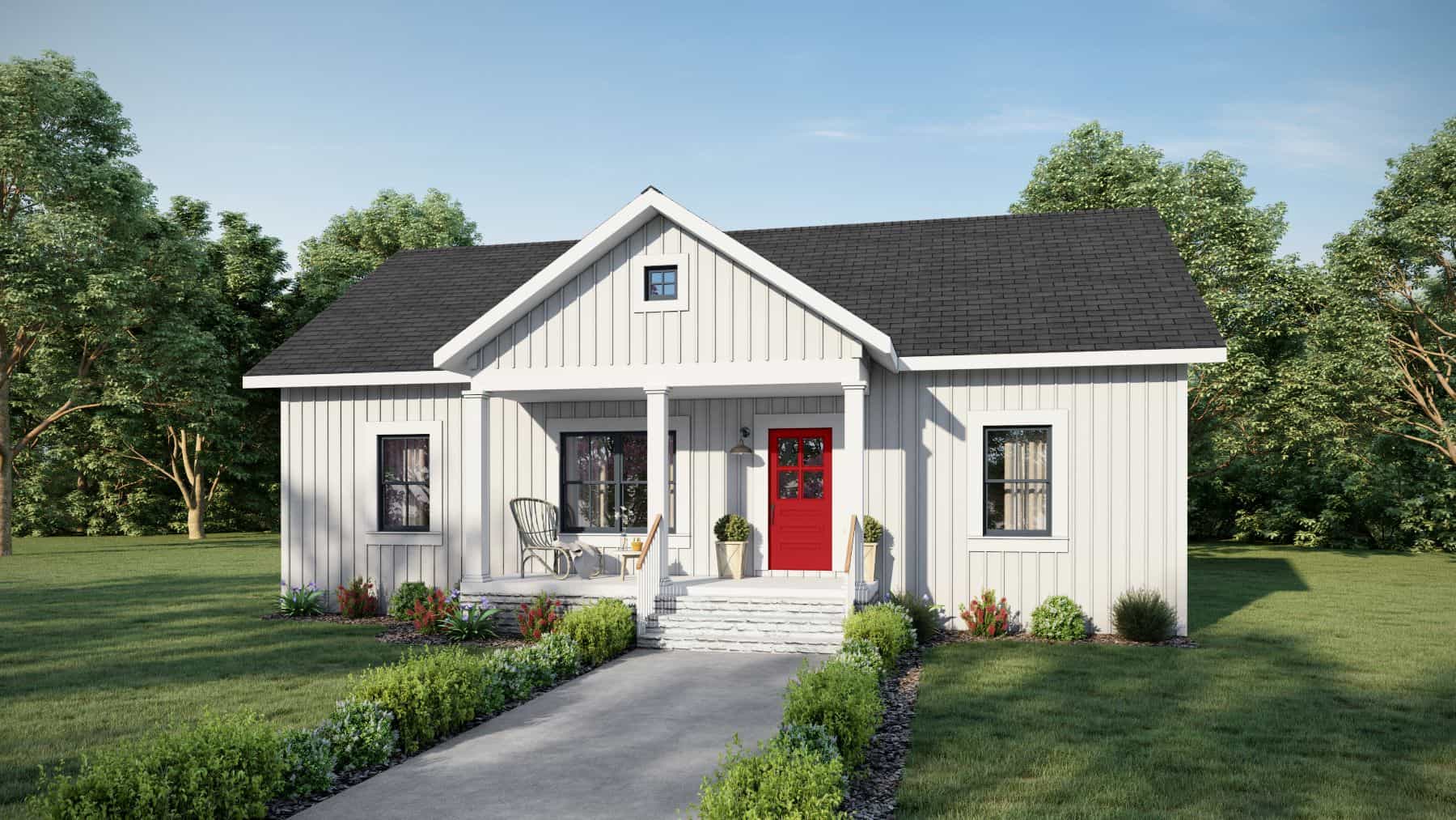 This Country Ranch style home has a total living area of only 1035 square feet, but it lives bigger than its footprint suggests. The lovely home, with its cozy covered entry and simple yet elegant design, features spaces that are bound to please all members of the family.