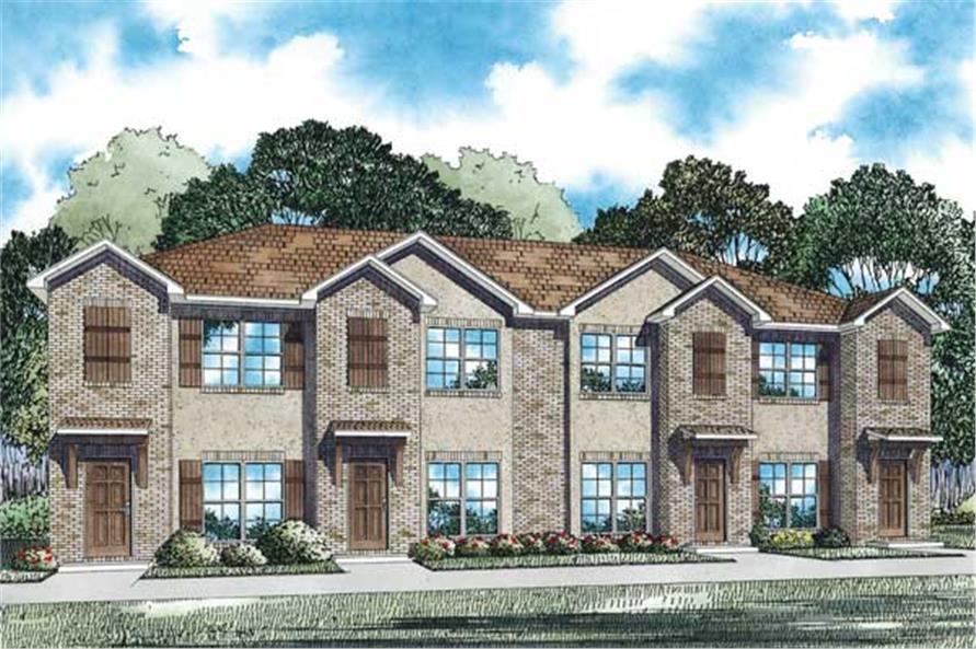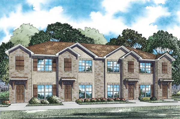 This Multi-Unit building with four units (Multi-Family House Plan #153-1100) has 1053 square feet of living space per unit. The 2-story floor plan includes 2 bedrooms per unit.