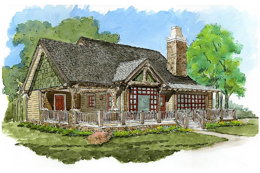 This charming Cottage style home with Rustic expressions gives the impression of a thatched cottage with a three-quarter wrap-around partially covered front porch. Inside you'll find vaulted ceilings in the Great Room and master suite, plus a welcoming fireplace in the family room area. The 1-story floor plan has 1065 square feet of roomy heated-cooled living space and includes 2 bedrooms and 2 full bathrooms.