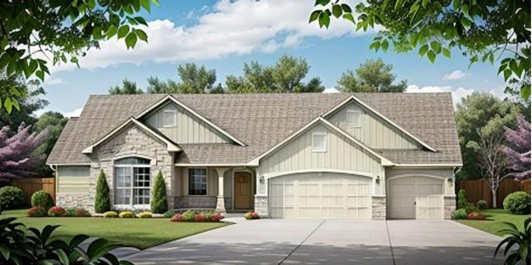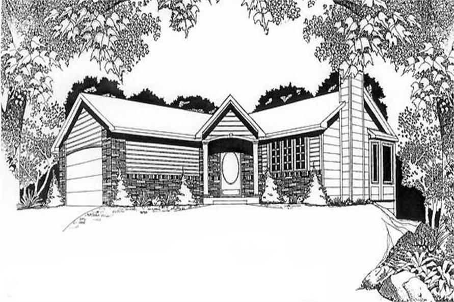 This inviting ranch style home with a small footprint (House Plan #103-1048) has over 1070 sq ft of living space. The one story floor plan includes 2 bedrooms. Special features include: vaulted ceilings in living, dining kitchen, and master bedroom; plant shelves; Jacuzzi tub; walk-in closet; bay window; fireplace; covered porch; optional finish basement with rec room, two beds, full bath.