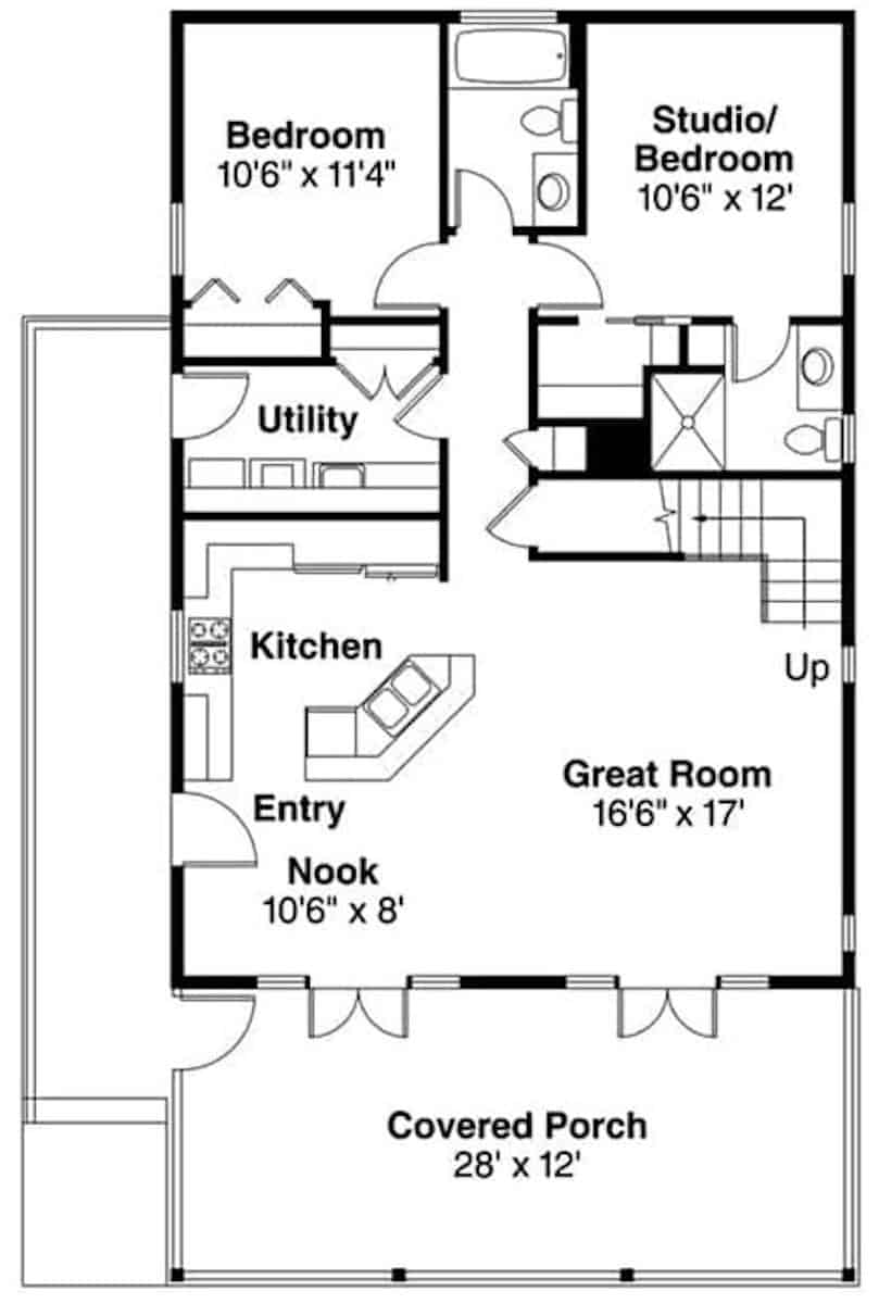You'll be enchanted by the unusual design of this wonderful craftsman cabin-vacation home. It has an upstairs bonus room with a deck/balcony that's notched into the front plane of the home's hip roof, giving the house a kind of Dutch gable look from the curb. The wrap-around porch is an added benefit for those who enjoy taking in their surroundings from the comfort of a rocking chair or porch swing. The house covers a total heated floor area of 1120 square feet of comfort and convenience for its residents.