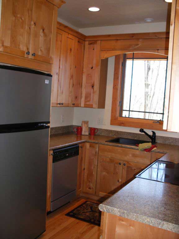 The economical 24' wide by 28' deep footprint is further enhanced with an expansive 10' deep partially covered sundeck, promoting many outdoor activities and capturing the rear view. Window seats in the sitting/dining areas are warmed by the wood stove, encouraging cozy indoor moments. The U-shaped kitchen is brightened with a greenhouse window, perfect for plant enthusiasts. The second-story art studio boasts a voluminous 13' high sloped...