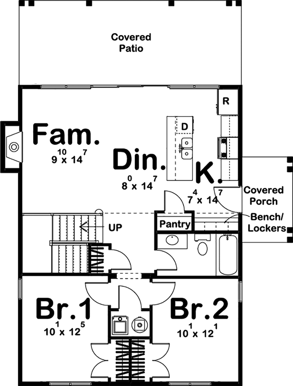 This lovely Cottage style home with Ranch influences (House Plan #100-1345) has 1190 square feet of living space. The 2 story floor plan includes 3 bedrooms.