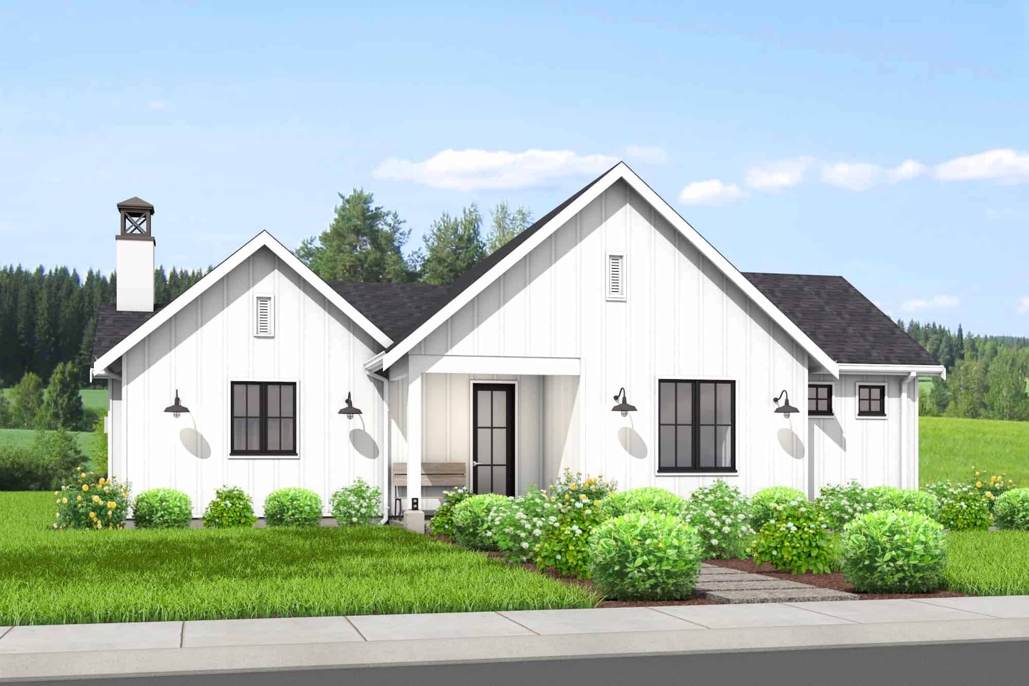 You'll love the cozy, comfortable lifestyle offered by this 2-bedroom, contemporary ranch home. The pleasant, forward-facing gables, lovely multi-pane windows, and white vertical siding give the house great curb appeal and make a lasting favorable impression. The elegant 1-story home's floor plan has 1200 living square feet with amenities that include: