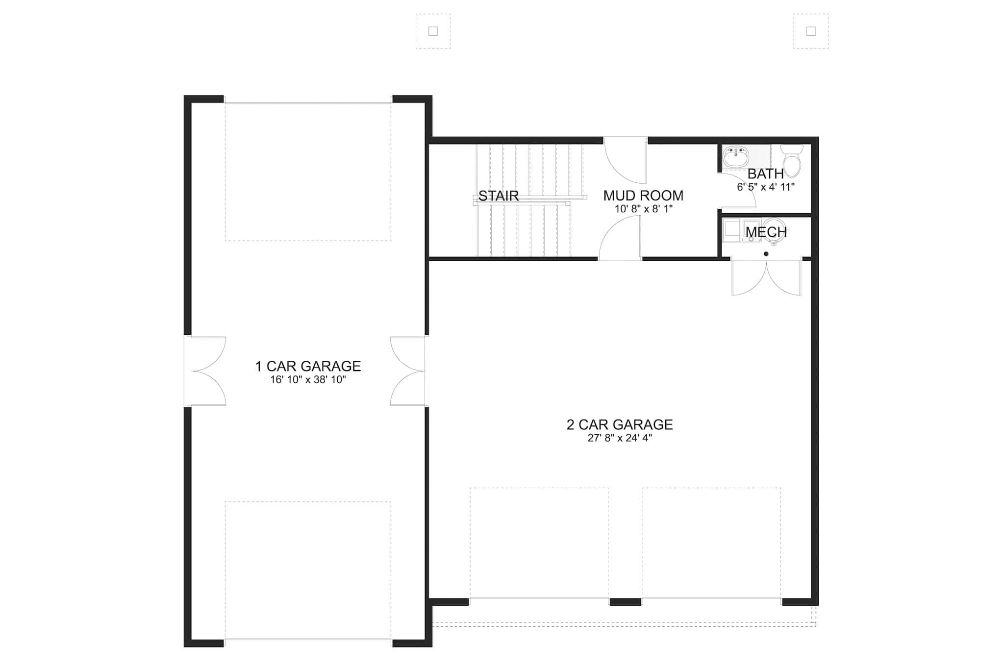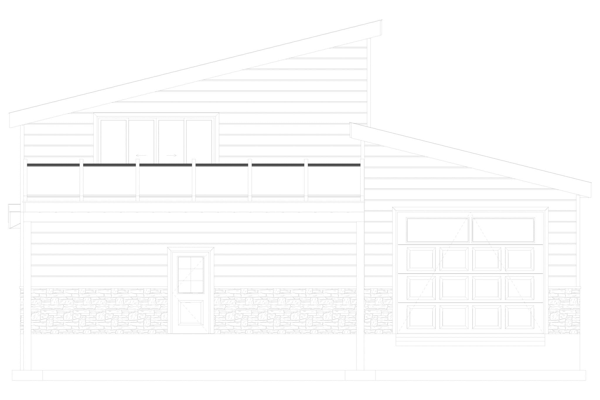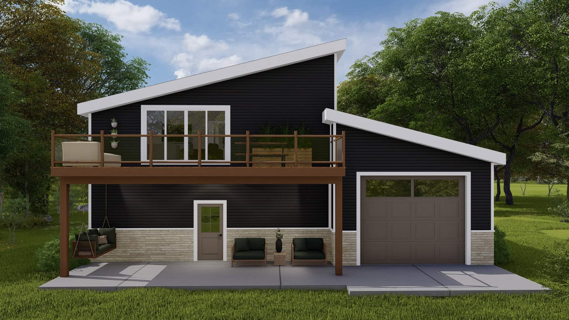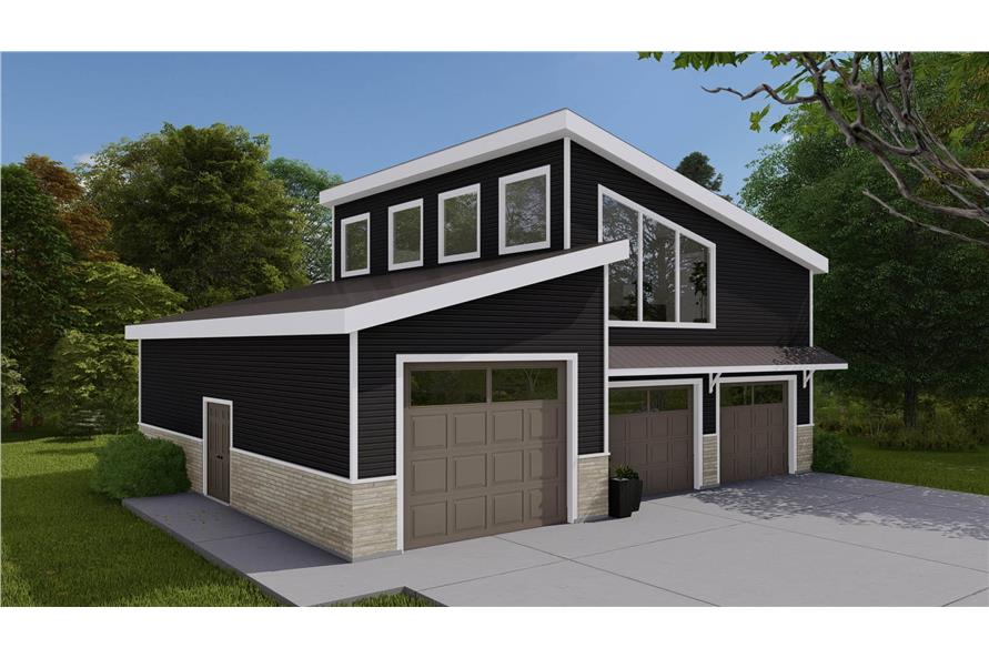 Designed with distinct Contemporary style elements, this 1,420 square fee garage comfortably accommodates three vehicles and half bath. Its adaptable layout allows for the creation of extra functional spaces. The garage level also includes a convenient half bath. Above the garage, a fully conditioned 1,207 square feet living area includes a well-equipped kitchen, a bedroom, a full bathroom, a walk-in closet, and an expansive Great Room.