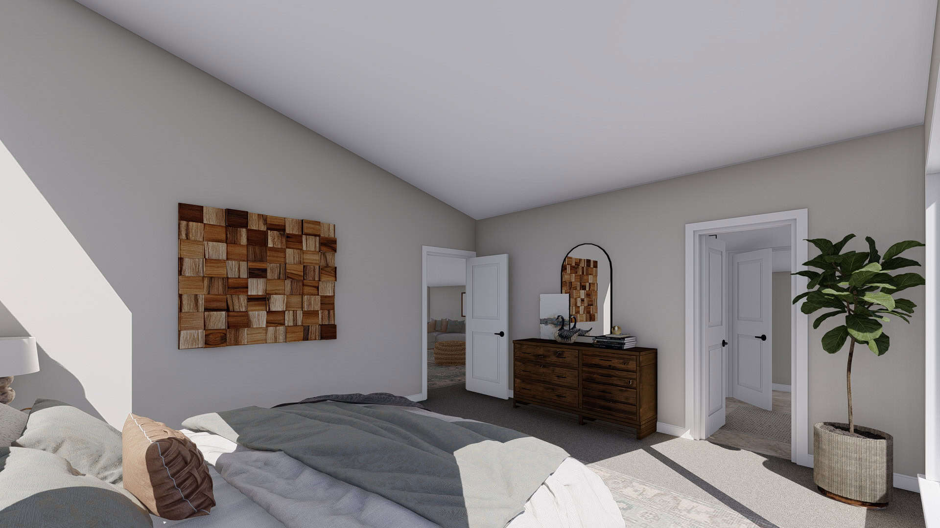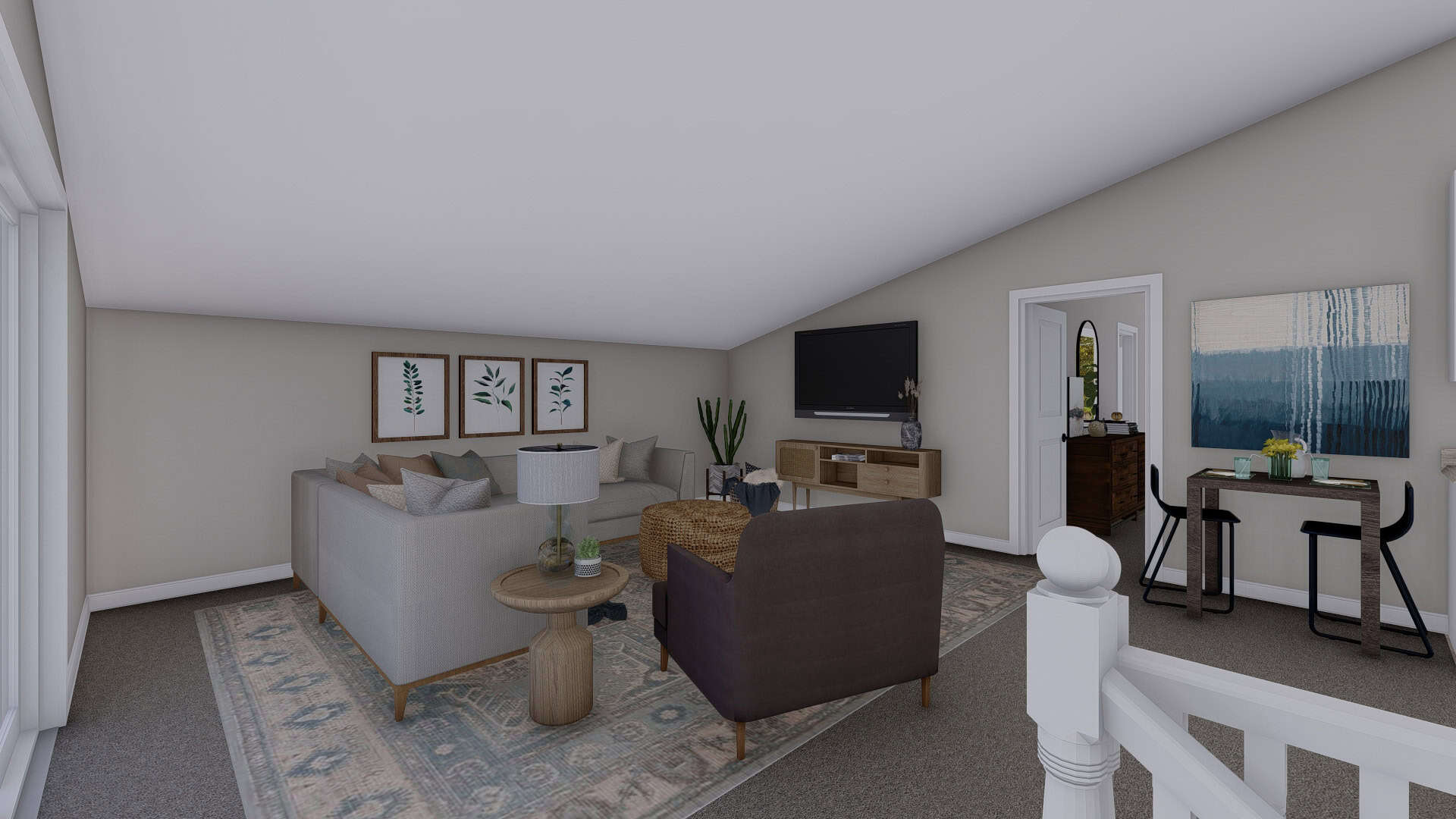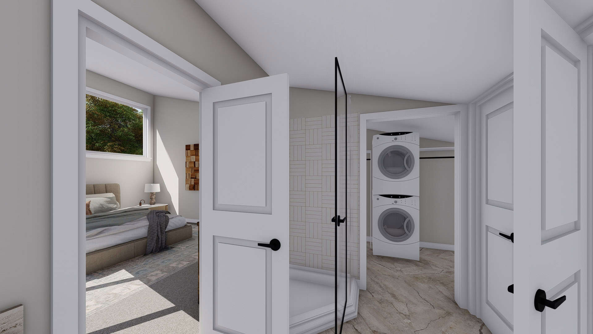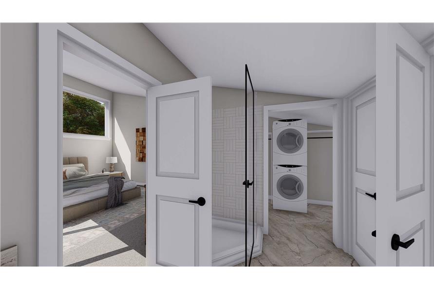 Designed with distinct Contemporary style elements, this 1,420 square fee garage comfortably accommodates three vehicles and half bath. Its adaptable layout allows for the creation of extra functional spaces. The garage level also includes a convenient half bath. Above the garage, a fully conditioned 1,207 square feet living area includes a well-equipped kitchen, a bedroom, a full bathroom, a walk-in closet, and an expansive Great Room.