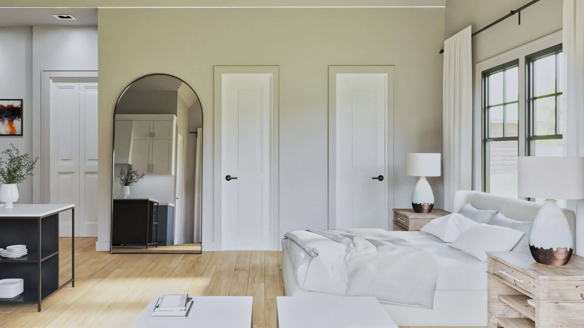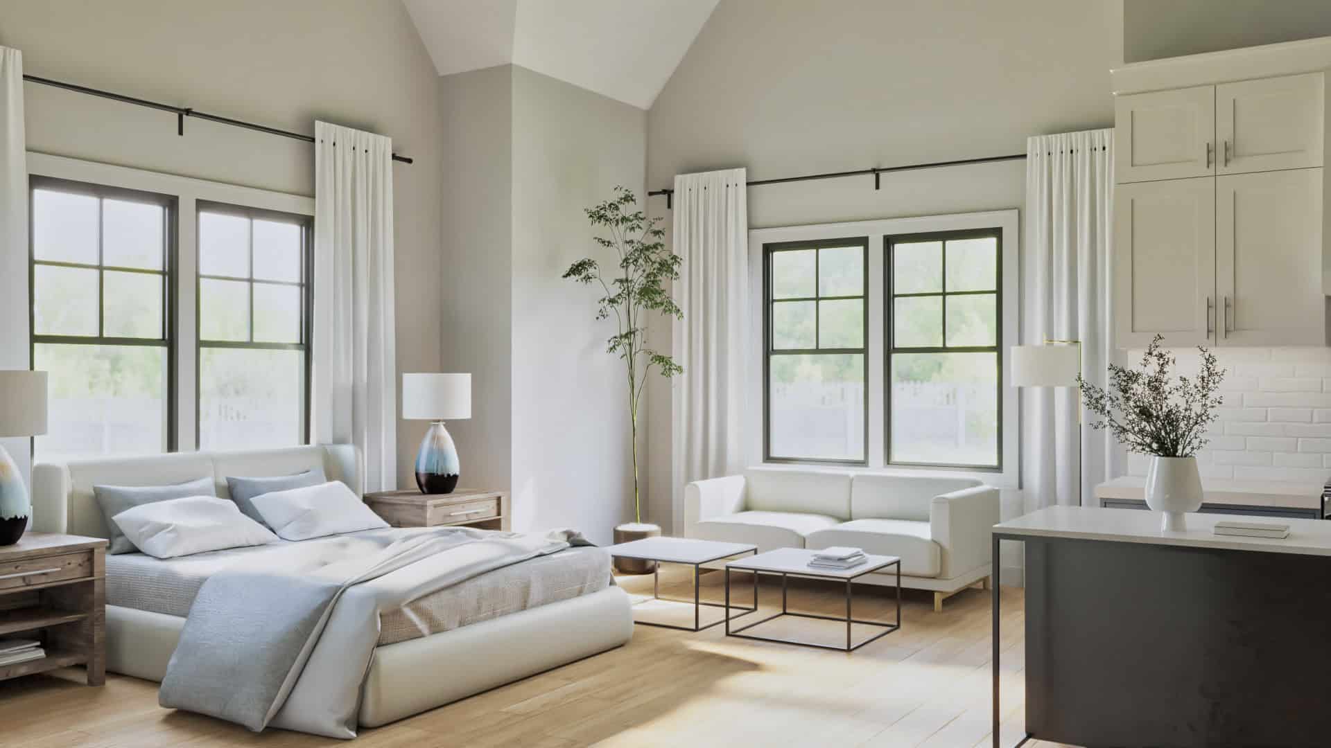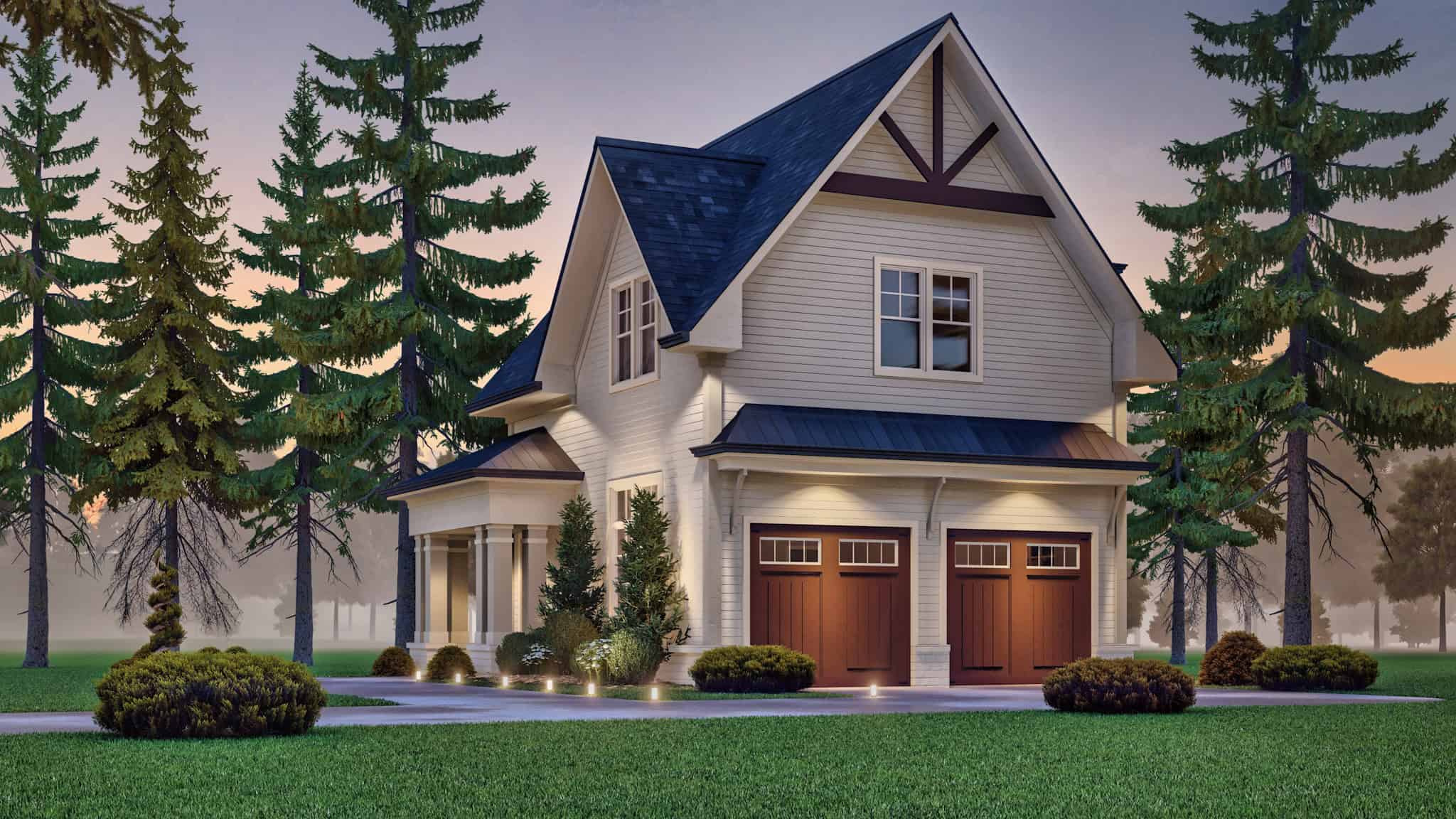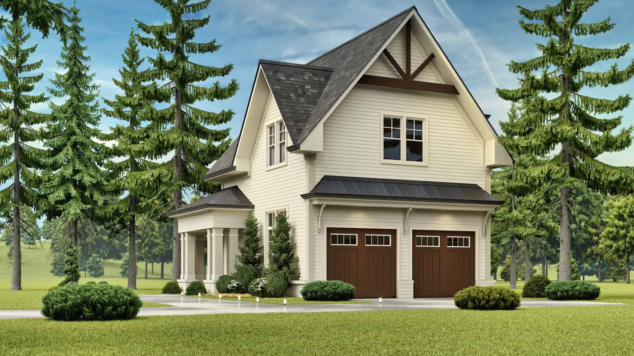 Combining the cozy appeal of Modern Farmhouse style with functional design, this garage plan features 569 square feet for a two-car garage, complemented by 1,219 square feet of fully conditioned living space on the same level. The interior layout includes a spacious studio, a full bathroom with a walk-in closet, and a thoughtfully designed kitchen complete with a pantry.