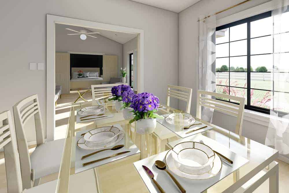 Looking for a small house plan that has it all? Check out our 1232 sq ft small house craftsman plan! This beautiful home features a spacious kitchen with ample storage and a large 9-1/2 foot long center island which comfortably seats up to four. The kitchen has direct access to both the walk-in pantry and rear dining porch which can be screened in or left open. The optional vaulted ceiling in the living room and kitchen rises to 13-1/2 feet at the center. The barn doors leading into the master suite and guest room can either be closed for privacy or left open to provide great sightlines...