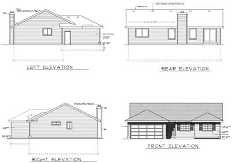 The Ranch house plan 100-449 is a single story home with 1252 square feet. It has 3 bedrooms, 2 baths, and a 2 car garage.
