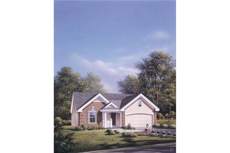 This starter or empty-nester ranch (Plan #138-1090) has 1268 square feet of living space. The 1-story floor plan includes 3 bedrooms and vaulted ceilings in the great room, dining area and master bedroom.
