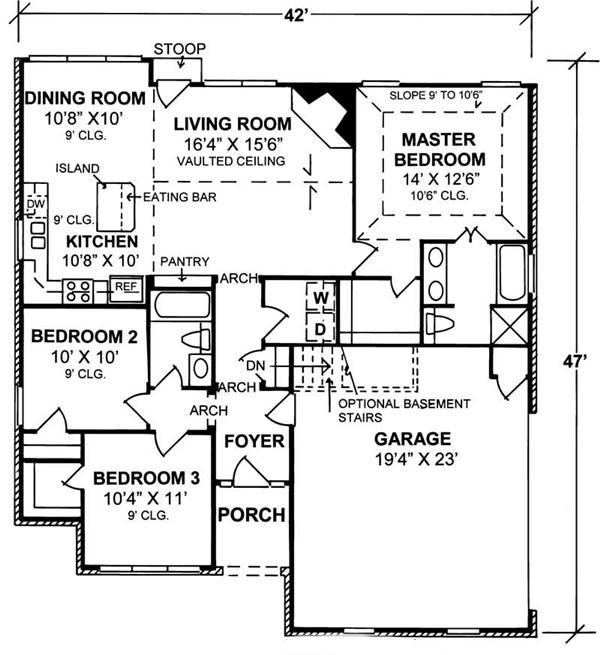 This economical plan is not without its luxuries. At only 1,270 sq. feet, the house manages to have a comfortable and accommodating master suite, and a large gathering area comprised of an open kitchen and living room.