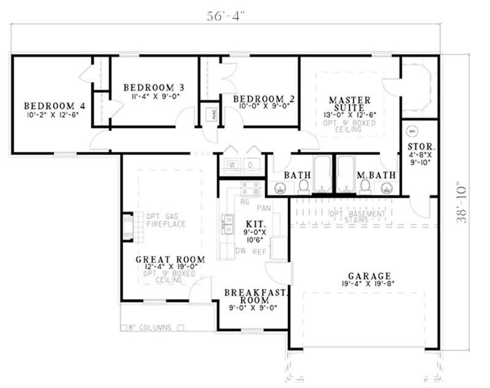 Appearing much larger than it actually is, this home includes everything a single parent or small family might need. An optional basement is available for this design, giving you many options. The quaint front porch has 8-inch columns adding a nice touch to this conservative design. This step-saver kitchen and sunny breakfast room are located at the front of the home, while all bedrooms are placed at the rear of the home for added privacy. For a touch of elegance, nine-foot boxed ceilings are used in the great room and master suite bedroom giving an illusion of a much larger space. The...