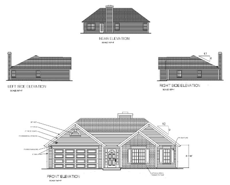 This strikingly attractive compact home is affordable, yet full-featured. The beveled glass front door provides a luxurious entry into the foyer. You'll be impressed with the 16' by 20' family room with it's vaulted ceiling. The open kitchen/dining area offers an optional bay for additional space. The master suite in this split bedroom plan is truly the highlight of this design. There are his and hers closets, a vaulted bath with an elegant corner tub, separate vanities, and a shower.