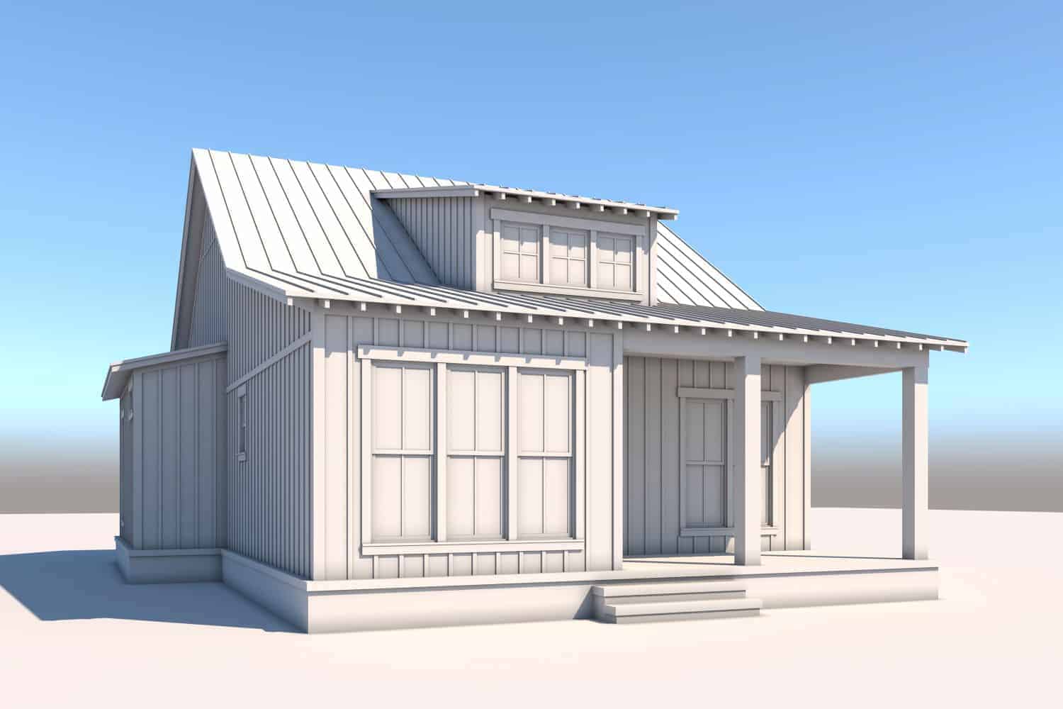 Looking for a charming farmhouse that offers all the modern amenities you need? Look no further than the 1299 Country and Modern Farmhouse! This beautiful plan offers three bedrooms, two full baths, and a full size laundry room, making it perfect for any family. The living, dining, and kitchen are all open for easy entertaining and plenty of windows for natural light and to take in those amazing views. This design also offers 10' ceilings with a vaulted ceiling in the living/dining space – giving you that extra sense of space and luxury.
