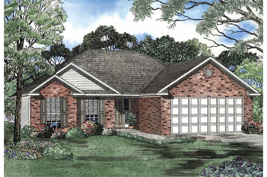 A charming exterior lends curb appeal to this Nelson Design Group home. A vaulted ceiling and cozy fireplace add elegance to the great room. Nearby, the step-saving kitchen merges with the dining room for your convenience. A rear covered porch is also available for outdoor dining possibilities. Relax the day away in this secluded master suite with boxed ceiling. An additional bedroom/study is also included at the front of this design. Comfortable and private, this room will prove to be perfect for any guest visiting your home.