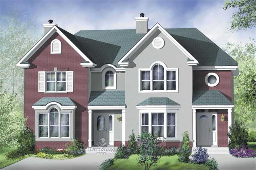 House plan features and specifications represent one unit: This 1,306-square-foot per unit duplex plan blends efficient living with smart design, making it ideal for rental income or multi-generational living. One unit features three bedrooms and the other two, a full bath, an open-concept living area, and a shared covered front porch. The compact footprint makes it a perfect fit for narrow lots or urban infill projects, while the traditional exterior ensures curb appeal and timeless charm.