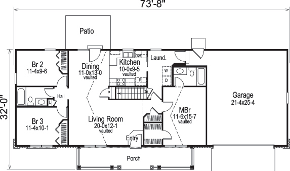 This lovely Ranch style home with Traditional influences (House Plan #138-1165) has 1310 square feet of living space. The 1 story floor plan includes 3 bedrooms.