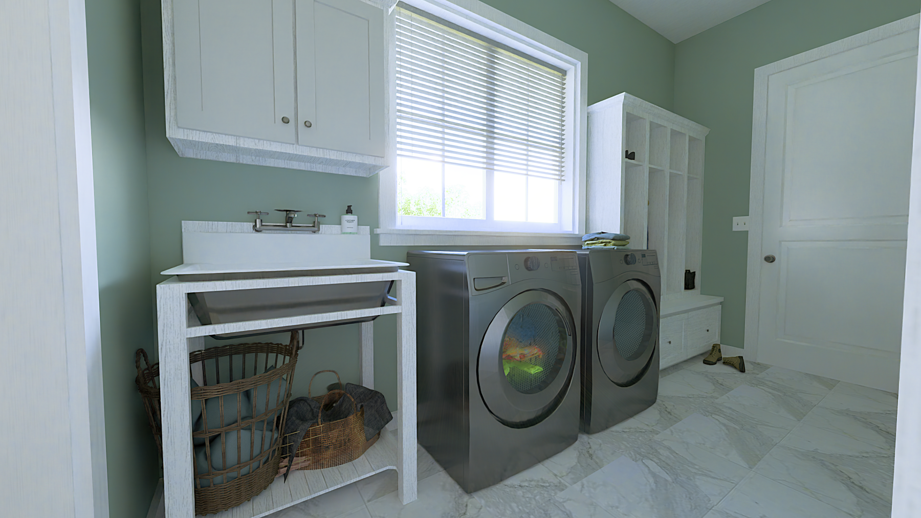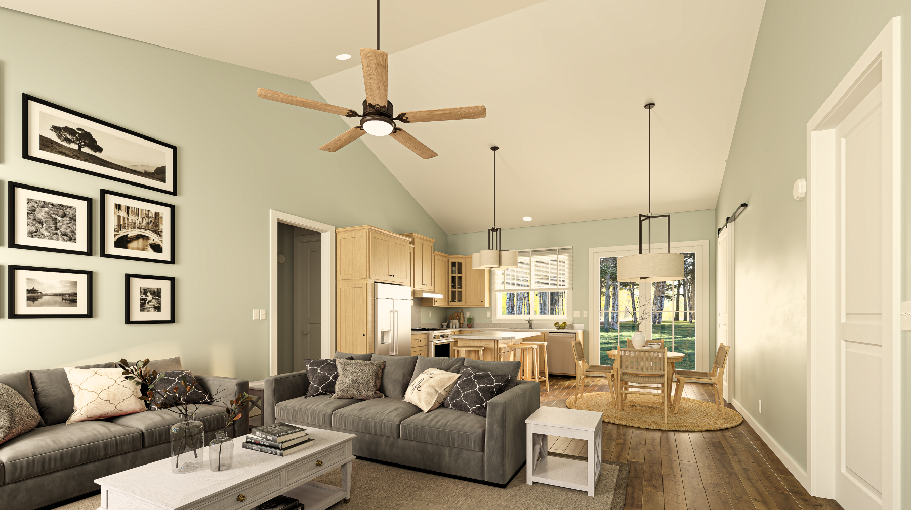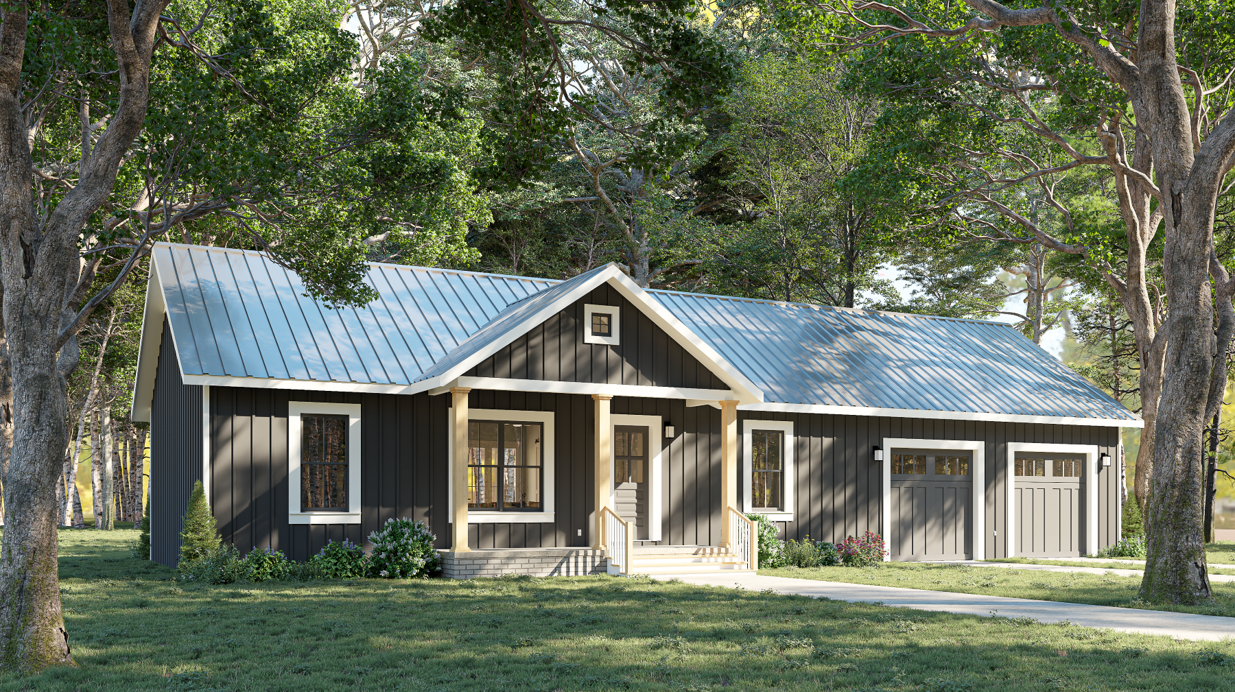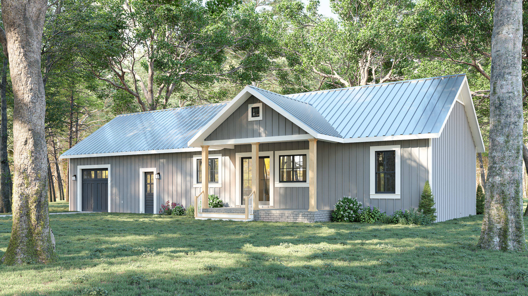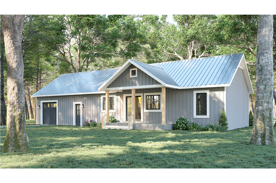 This 1,311 sq. ft. country ranch home includes 3 bedrooms and 2 baths. The open floor plan features a kitchen island with storage and seating, a walk-in pantry, and a laundry/mud room by the garage. The master suite offers a large closet, custom shower, and tub, while two bedrooms share a bath. Enjoy covered front and rear porches.