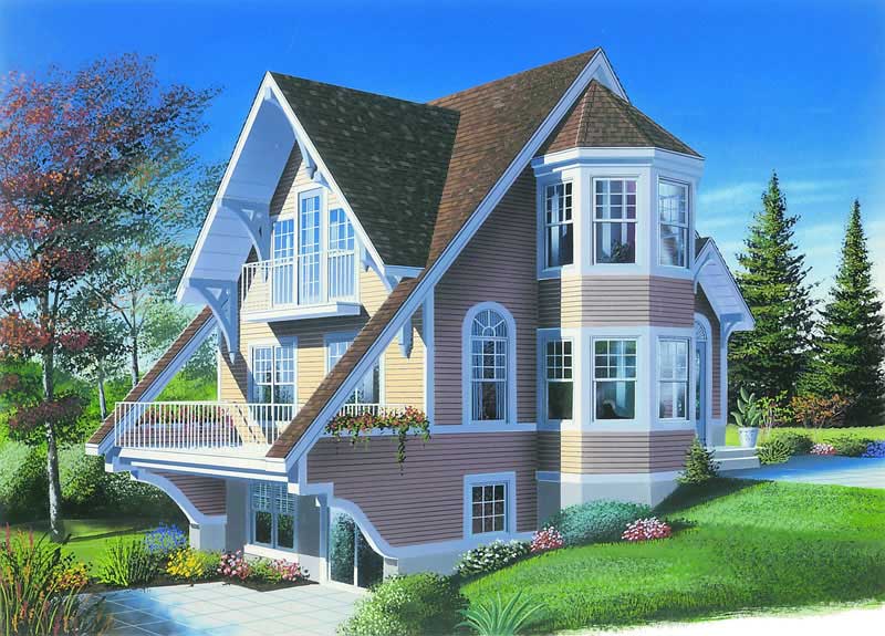 1st level: entry hall with coat closet, powder room/laundry. kitchen/dinette, dining room, living room, Hot Tub area. 2nd level: 1 or 2 bedroom option with full bathroom. Unfinished Walkout basement (basement option included to the plan). Access to private balcony on second floor, abundant windowing, mezzanine, sloped ceilings.