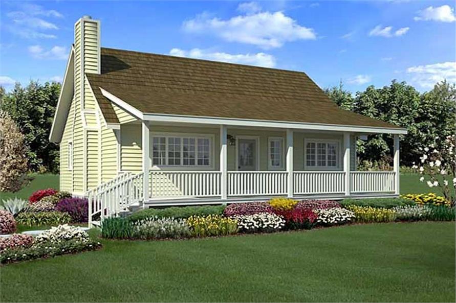 Yearning for your little cabin in the woods? With 1,328 sq. ft., its not terribly little, but its got all the other classic country charmincluding a breezy porch and quaint living room fireplace, and sloped roof, too. The kitchen and dining room pair up so family and good friends can munch and mingle without feeling crowded. Two big bedrooms snuggle up to each other. Each of them owns a large closet, plus windows on two walls that make the most of natural light. Even the bathroom features a window, and a tub tucked beneath it. Small is sweet!