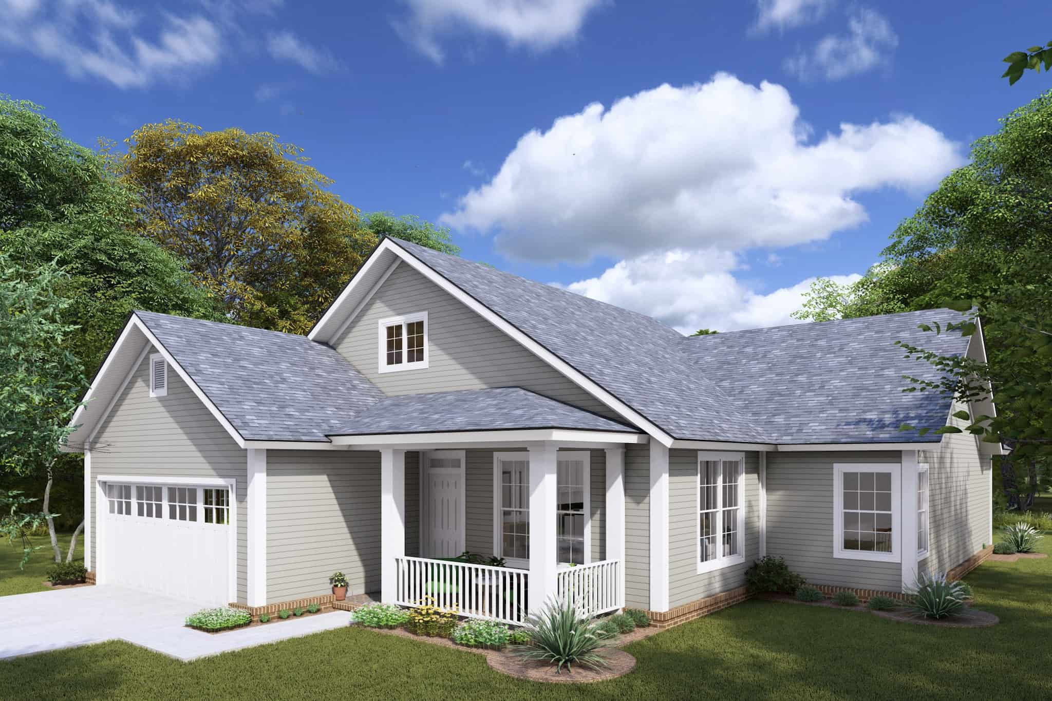 The beautiful exterior of this Craftsman-stlye house plan welcomes you in from the large covered front porch. Step into the home plan, and you’re immediately in the heart of the home. The living room has beautiful vaulted ceilings and a built-in fireplace. The home has a great open floor plan, which allows the living room to flow right into the formal dining room and the kitchen. The dining room is spacious with 9-foot-tall ceilings and access to the rear porch. Continue into the house plan's kitchen, which has a practical L-shape design. The kitchen features...