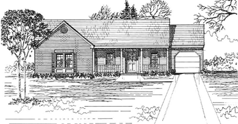 This attractive country ranch (House Plan #124-1112) has 1350 square feet of living space. The 1 story floor plan includes 3 bedrooms. Fireplace in the great room. The master bedroom has a walk-in closet.