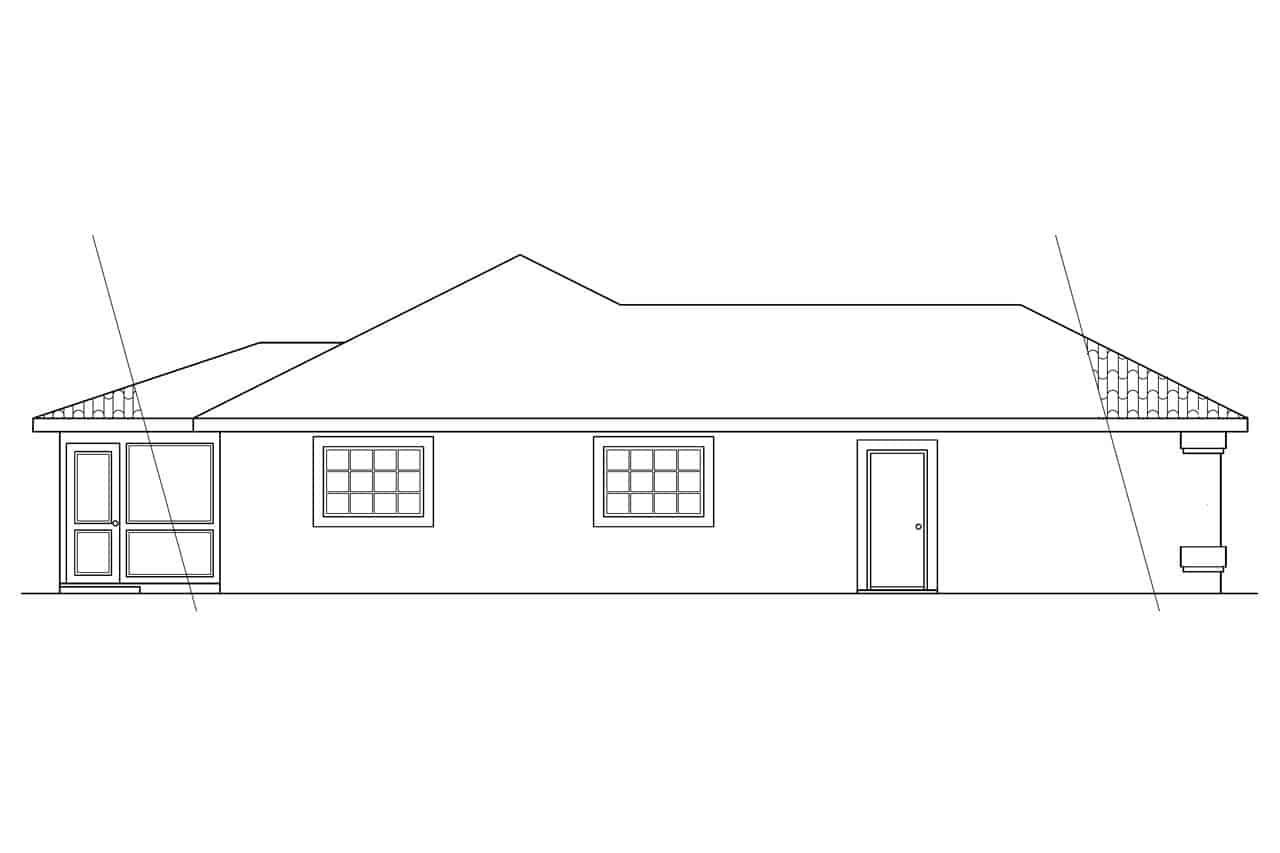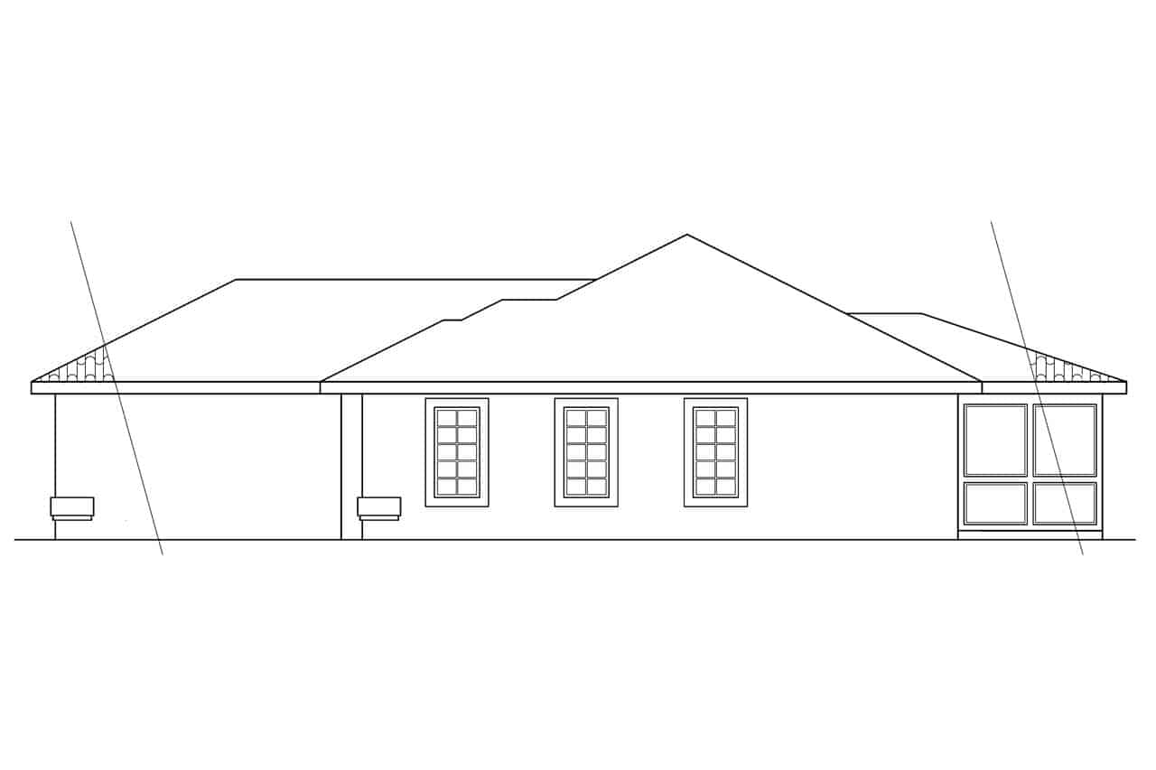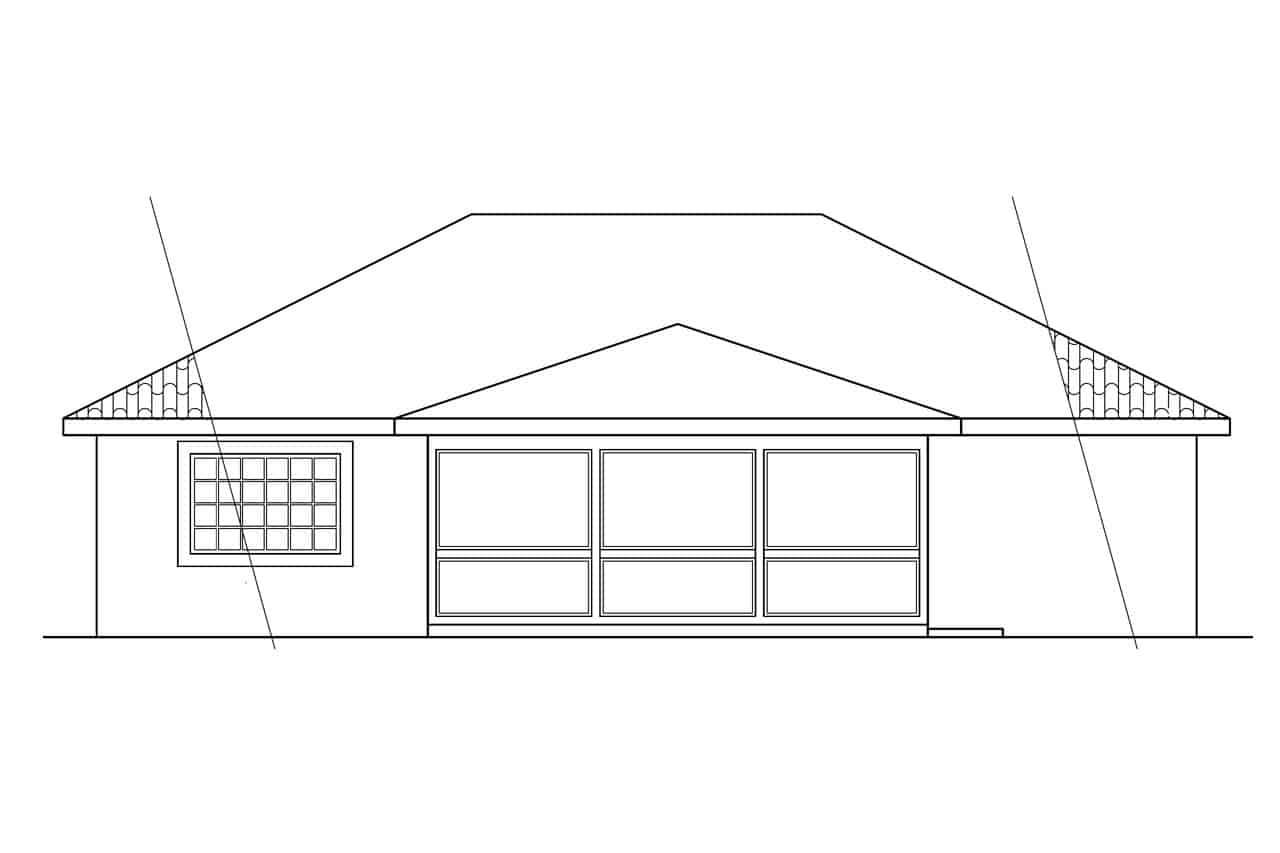 The #108-1359 home plan is a great single story, Mediterranean style house plan with 1352 total living square feet. Tile roof adds charm to this small, Mediterranean home plan. The sunny screened porch, great room, kitchen and nook are at center. Glass blocks fill the graceful arched window in the master bathroom.