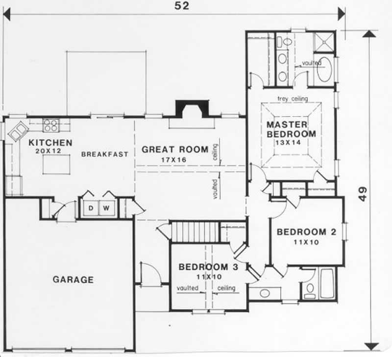 This home features a vaulted ceiling bedroom, 3 bedrooms, 3 bedrooms, 2 bathrooms, trey ceiling in the master bedroom, attached two-car garage, and a main level laundry.