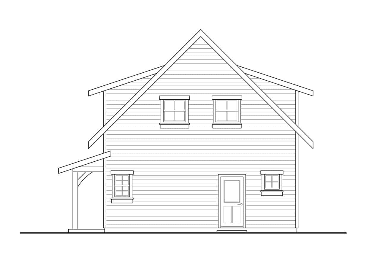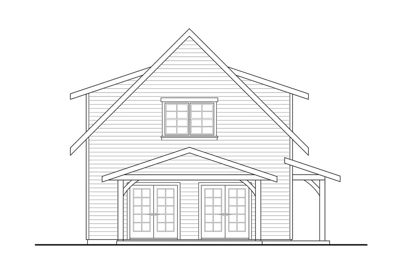 This small but efficient Cottage is perfect for a she-shed, a man-cave, a craft room, or a pool house. A full-length front porch allows everyone to connect with nature. You’ll find all kinds of amenities in an efficient space of this 2-story floor plan that has 1382 square feet and includes a recreation room, beverage bar, vaulted studio, full bathroom, and lots of storage space. Modify this plan to add bedrooms and turn it into a guest cottage!